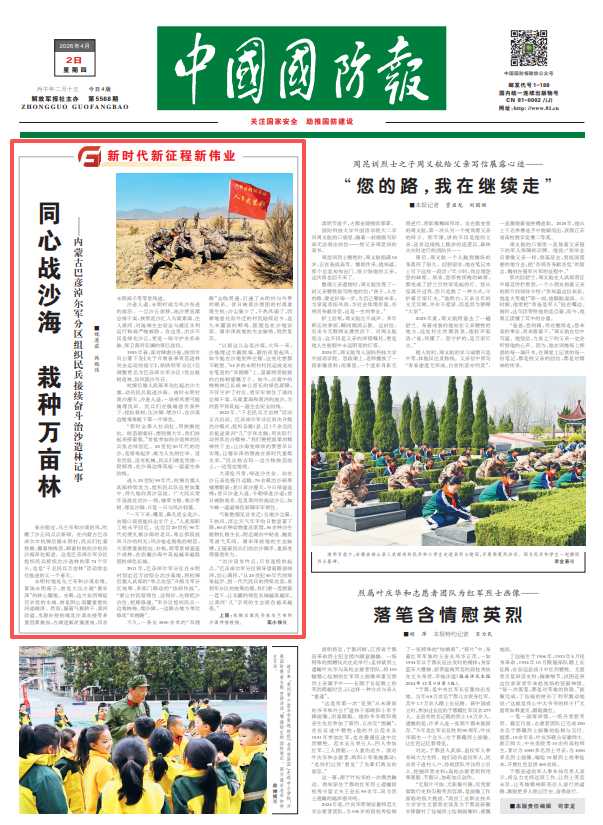 2023年,“千名民兵万亩林”活动正式启动。巴彦淖尔军分区再次升级治沙模式,组织各旗(县、区)千余名民兵挺进黄河“几”字弯北侧,用实际行动传承治沙精神。“我们要把前辈的精神传下去,让沙海变绿洲的梦想早日实现,让屠申泽的碧波在新时代重焕光彩。”民兵热吉玛一边为梭梭苗培土,一边坚定地说。