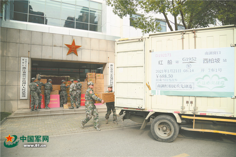 南湖区人武部部长林斌介绍,石家庄等地出现疫情后,嘉兴军分区和嘉兴市南湖区人武部主动对接石家庄警备区和石家庄市平山县人武部,了解疫情防控物资需求,第一时间动员组织力量筹措物资。21日上午,南湖区“南湖红船民兵先锋连”队员们肩扛手搬,不到半小时,4.56万个口罩、125箱洗手液、110件大衣、1万双医用手套等抗疫物资全部紧急完成装车。