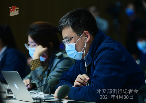 汪文斌:根据2021年五一劳动节假期安排,外交部例行记者会将于5月1日至5日休会,6日恢复。休会期间,外交部发言人办公室照常接受记者传真、电子邮件或微信提问。