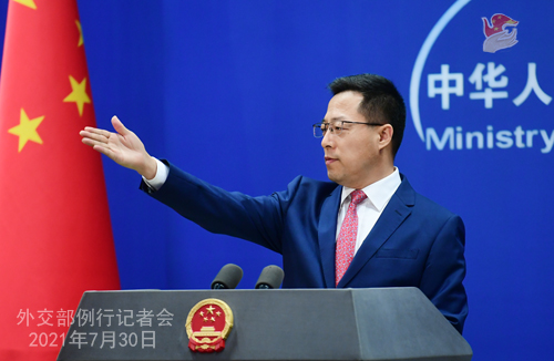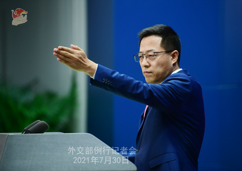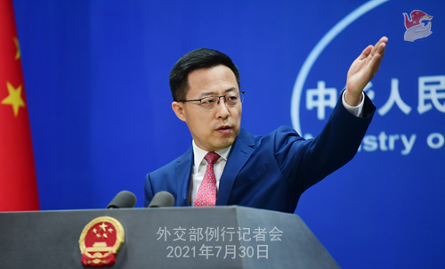 赵立坚:7月29日,中国外交部会同国药、科兴、康希诺、智飞龙科马4家疫苗企业,共同主办了新冠疫苗合作企业对话会,来自20多个国家的30多家疫苗企业参加。