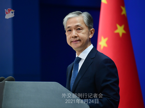 汪文斌:当前阿富汗发生的事情清楚地告诉人们,什么是美国所讲的“规则”,什么是美国所谓的“秩序”。美国可以肆意对一个主权国家进行军事干涉,而不必为这个国家的人民所遭受的苦难负责;美国可以想来就来,想走就走,而不必征求国际社会,哪怕是其盟国的意见;为了维护“美国第一”,美国可以任意地抹黑、打压、胁迫霸凌其他国家,而不必付出任何代价。这就是美国想要的秩序。美方总试图拿“规则”“秩序”为自己的自私自利和霸凌霸道行径辩护,但是现在又有几个人会相信呢?