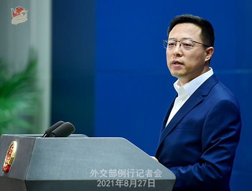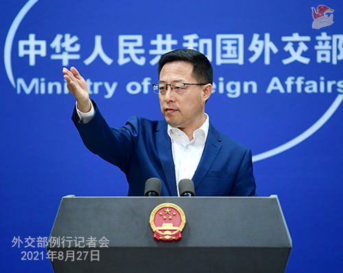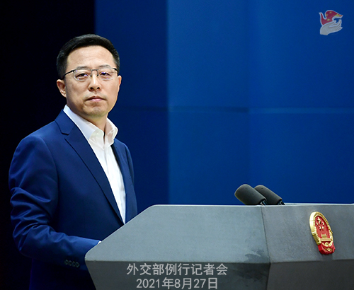 赵立坚:中方对喀布尔机场附近发生爆炸造成重大人员伤亡感到震惊,并予以强烈谴责。这一事件说明,阿富汗安全形势依然复杂严峻。希望有关方面采取有效举措,确保阿富汗局势平稳过渡,确保阿富汗人民和外国在阿公民的人身安全。