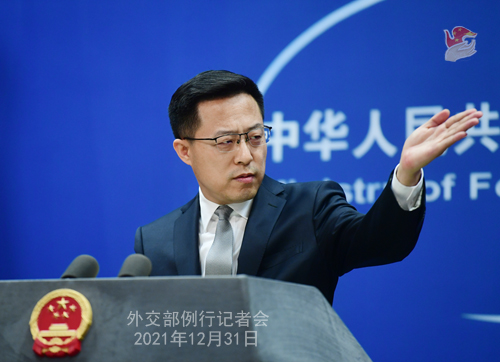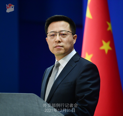 赵立坚:为落实今年10月王毅国务委员兼外长同阿富汗临时政府代理副总理巴拉达尔在多哈会晤达成的共识,中国外交部亚洲司司长刘劲松同阿富汗临时政府外交部第三政治司司长贾拉里于12月30日以视频方式共同主持了中阿人道援助、经济重建两个工作层联络机制首次会议,双方相关牵头部门和成员单位参加。
