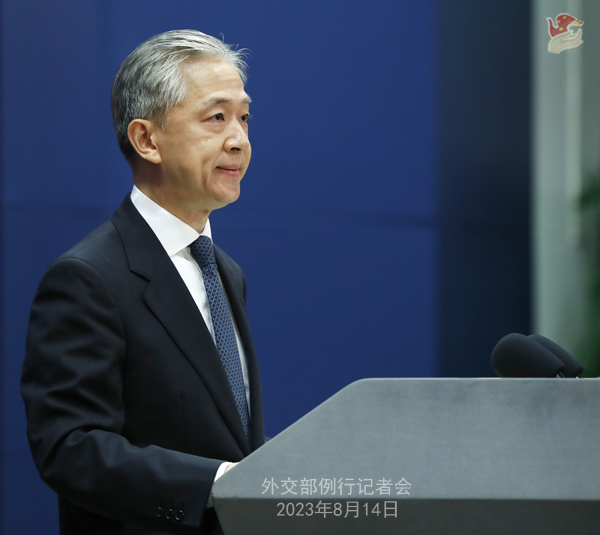 汪文斌:中方对卡卡尔先生被任命为巴基斯坦看守政府总理表示祝贺。无论国际和巴国内形势如何变化,中巴“铁杆”友谊始终坚如磐石、牢不可破。中方愿同巴方一道发展好中巴全天候战略合作伙伴关系,构建新时代更加紧密的中巴命运共同体,更好造福两国和两国人民。