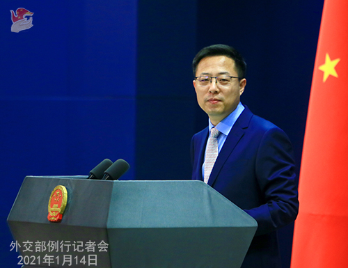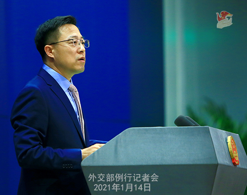 深圳卫视记者:据报道,美国常驻联合国代表克拉夫特取消访台后于1月14日与台湾地区领导人蔡英文举行视频通话。克拉夫特就与蔡英文通话发布推特并称,由于中国阻挠,台湾不能通过联合国、世卫大会等平台分享抗疫成功经验。中方对此有何评论?