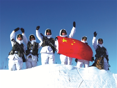 1月上旬,北部战区陆军某边防旅针对界江封冻可能出现走私换物、越界渔猎、误越国界等情况,加大边境管控力度,维护辖区边境一线安全稳定。图为官兵完成巡逻后与国旗合影。张裕怀摄
