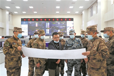 日前,南部战区某调度中心组织军代表走进铁路部门,学习了解军事运输投送基本知识。图为军代表们在广州江村编组站,与铁路调度人员研究车辆调控方法。