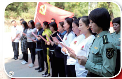 图②:女子民兵连开展党日活动,到张思德纪念碑前诵读《为人民服务》。纪常媛摄
