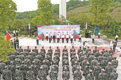 上图:“张超民兵先锋连”成立大会现场。吴 维摄
