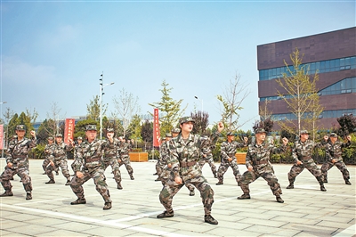 8月上旬,河北省廊坊市经济技术开发区组织基干民兵强化训练。图为基干民兵在进行军体拳训练。刘昀朋摄