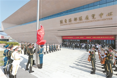 上图:在驻香港部队展览中心举行的升国旗仪式现场。易 定摄