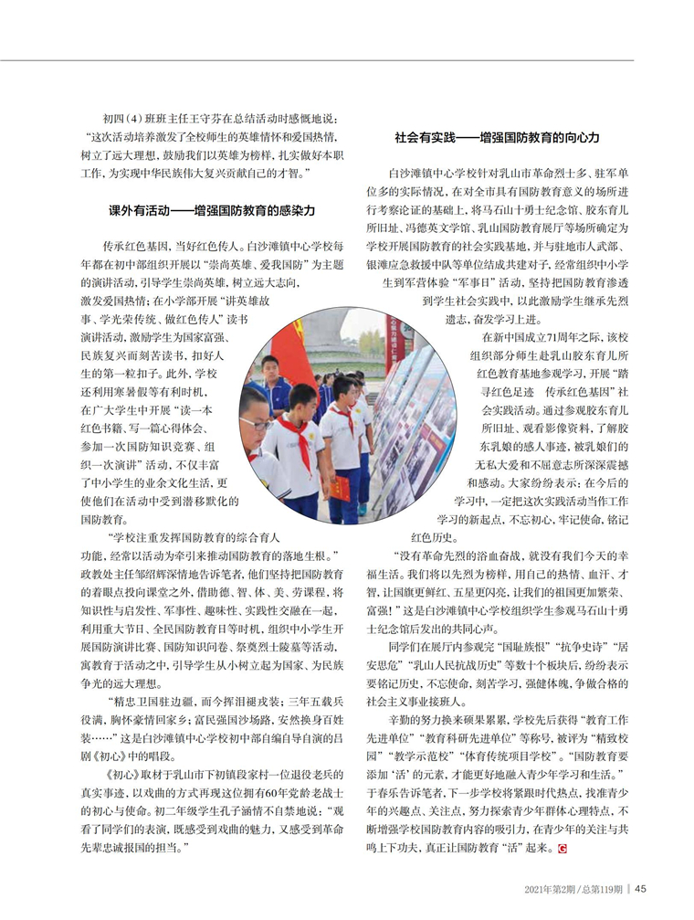 ——山东省乳山市白沙滩镇中心学校积极探索新时代国防教育方法