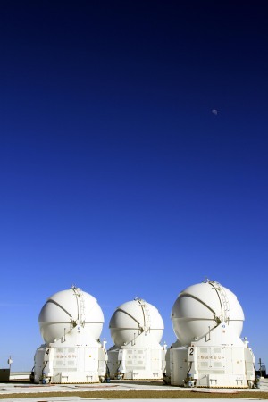 这是帕拉纳尔观测台三架口径为1.8米的辅助望远镜组成的甚大望远镜干涉仪(6月21日摄)。新华社记者叶书宏摄