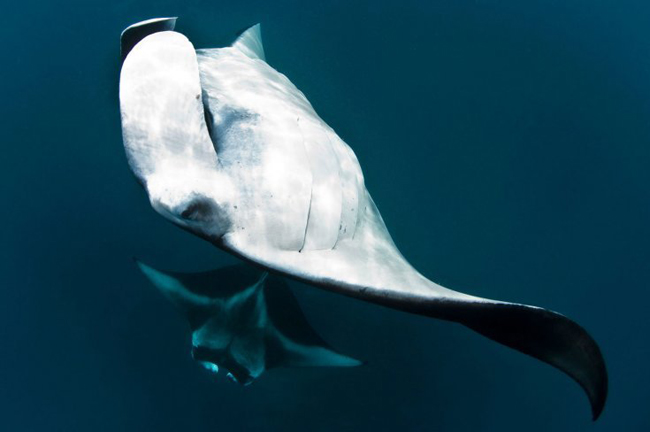 英国摄影师沃伦-巴维斯托克用了9天时间,在马尔代夫海底拍摄壮观的魔鬼鱼(又名:蝠鲼)集体觅食景象。照片中,身躯庞大的蝠鲼好似巨大的蝙蝠一样在水中游动,它们聚集在一起,享用浮游生物。