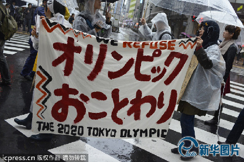 日本民众冒雨游行 抗议举办2020年夏季奥运会