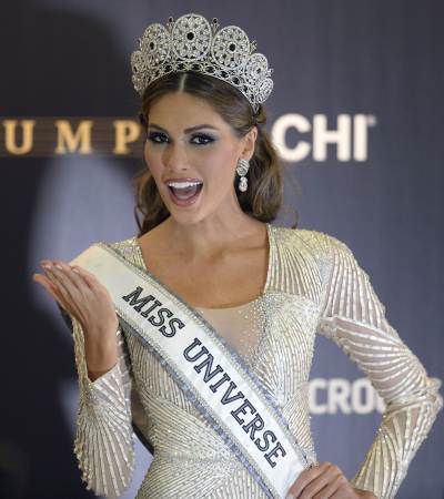 11月9日,在俄罗斯首都莫斯科举行的2013环球小姐总决赛上,委内瑞拉小姐加布里埃拉·伊斯勒(前)夺冠后庆祝。