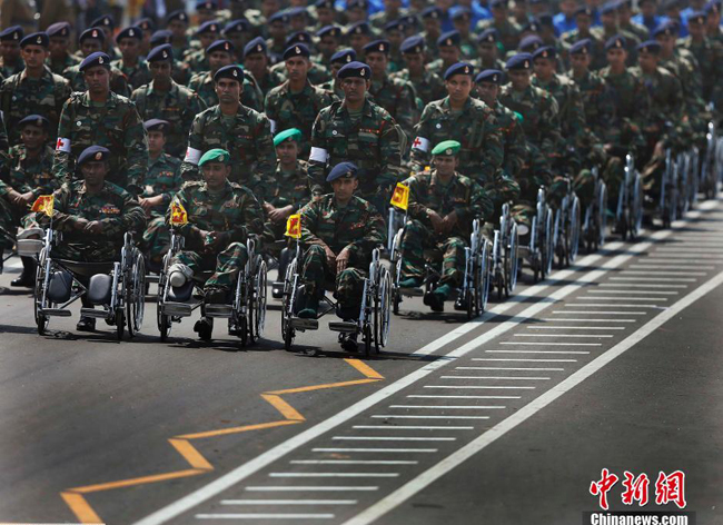 斯里兰卡阅兵庆祝国家胜利日 残疾士兵组方阵