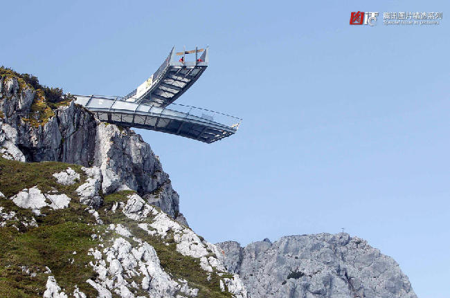 2010年年6月,德国南部的加米施-帕藤基兴镇,工人正在海拔2628米的阿尔卑斯峰上架设悬空观景平台。这两座被命名为AlpspiX的观景平台,交错着从悬崖边缘向外延伸约25米。观景台海拔2033米,距离地面垂直高度约为1000米。站在平台上,可以俯瞰赫棱塔尔谷的壮美风光。