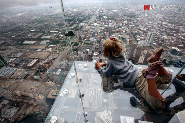 2009年6月,美国芝加哥市威利斯大厦第103层,建有四个向外伸出的玻璃阳台,阳台的玻璃地板厚达12.7厘米,可承重约5吨。阳台距地面412米,向外延伸约1.2米,天气晴朗时可以看到美国的4个州。
