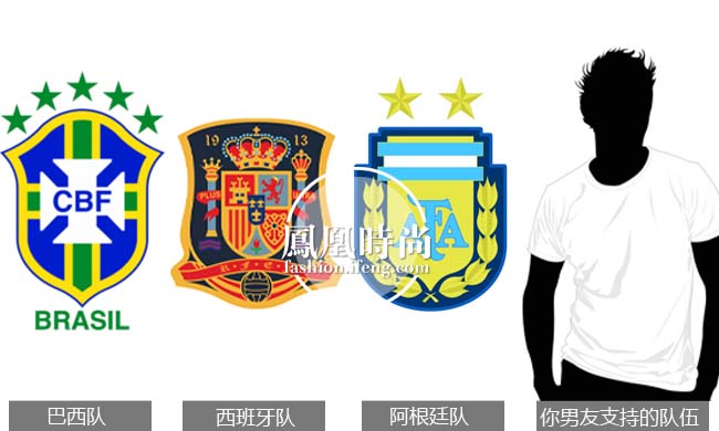 6.今年世界杯夺冠热门分别有巴西、西班牙、阿根廷,和你男友支持的队伍。