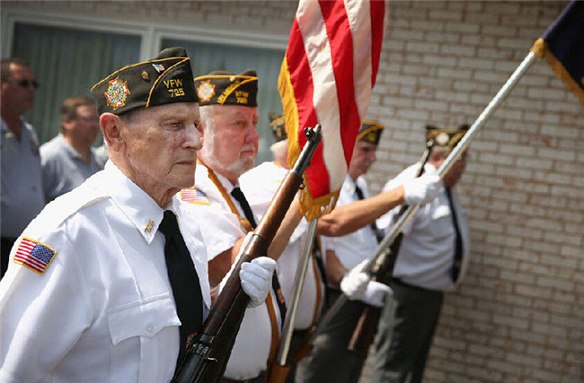 当Aaron Toppen的遗体被运往其家乡时,仪仗队庄严肃穆地在一旁立正。