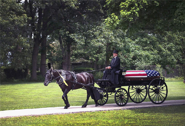 2014年6月24日,一辆装有Aaron Toppen遗骸的马车抵达圣约翰公墓。