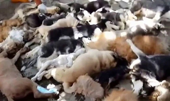 上传这段视频的用户称,这些狗都被使用心内注射方式处死,需要将针插入动物心脏注射药物。