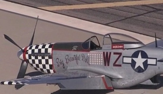 “野马”战斗机的飞行员皮诺进行完美机腹着陆。(网页截图)