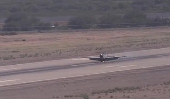 尽管飞机着陆时尽可能地保持温和,但下面的金属依然沿着跑道擦出火花。(网页截图)