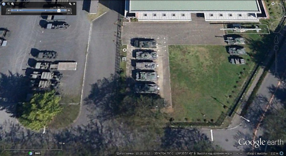 日本陆上自卫队基地里的坦克和装甲车。
