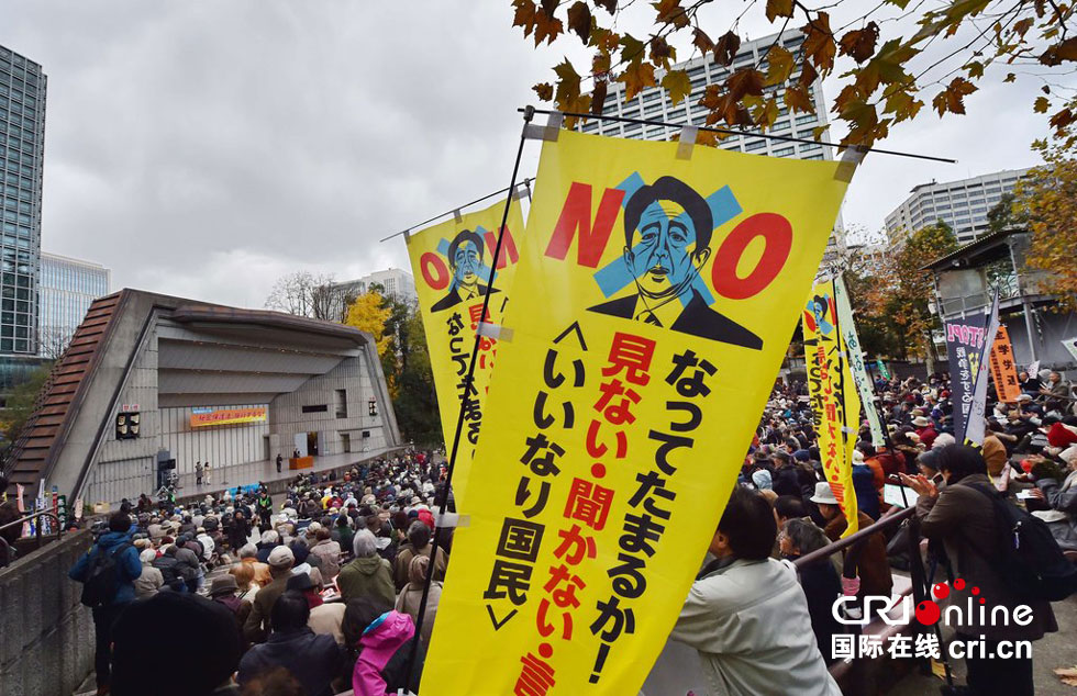 当地时间2014年12月6日,日本东京,日本示威者举行反政府集会,抗议充满争议的《特别秘密保护法》实施。该法将于12月10日实施。图片来源:KAZUHIRO NOGI/CFP