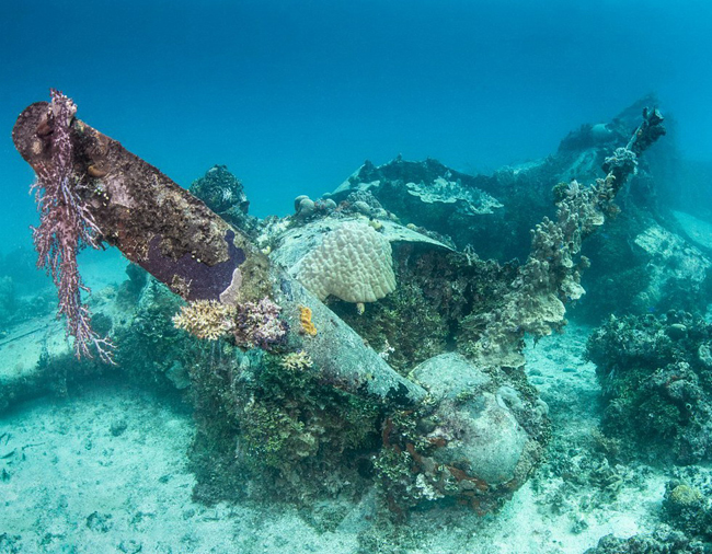 “艾米丽”号水上飞船残骸中损坏的螺旋桨和发动机。(网页截图)