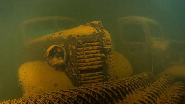 “伯耆丸”号被一枚鱼雷击沉,上面还可看到其运载的卡车。(网页截图)