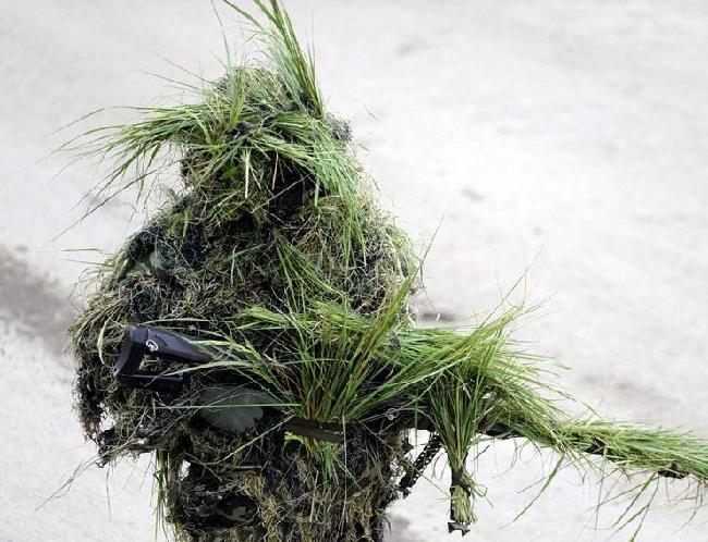 当地时间2009年6月15日,德国Munster,全副武装的狙击手看上去像是一个绿油油的稻草人。