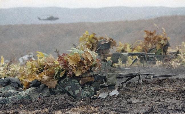 当地时间1987年,日本北海道,自卫队士兵用树叶伪装自己,参加日美联合军事演习。