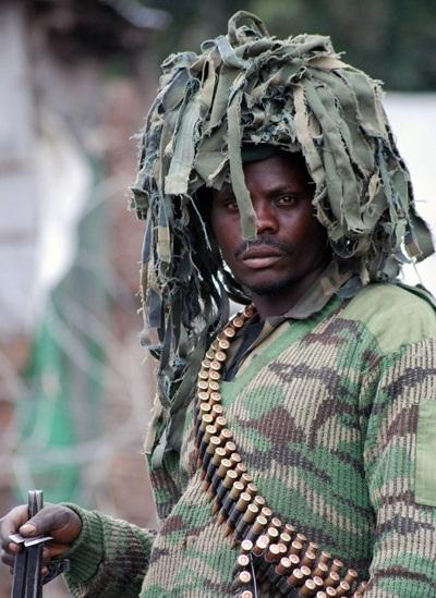 当地时间2013年7月17日,刚果,身穿伪装服的士兵。