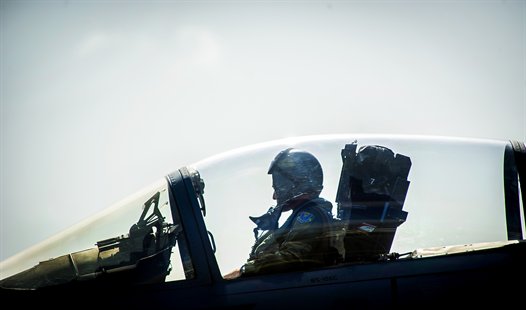 3月31日,在荷兰驻训的美国空军国民警卫队飞行员驾机准备起飞。