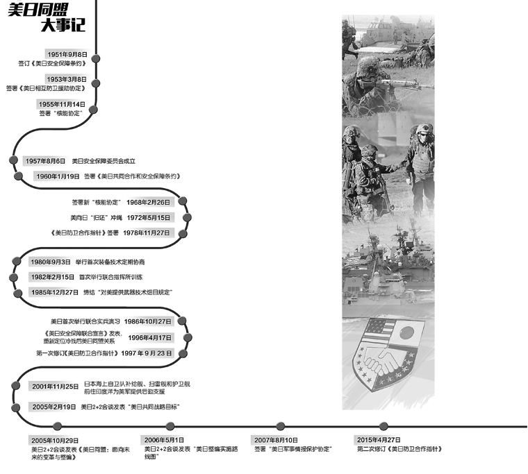 随着日本首相安倍访美,以及美日两国外交部长与国防部长2+2会谈的召开,美日两国高层最后敲定新《美日防卫合作指针》框架内容。4月27日,美国和日本在纽约联合发表新版《美日防卫合作指针》,允许日本武装力量在全球扮演更具进攻性的角色。