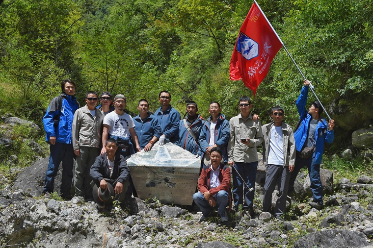 8月10日,进山找残骸的13名志愿者合影。新华社发