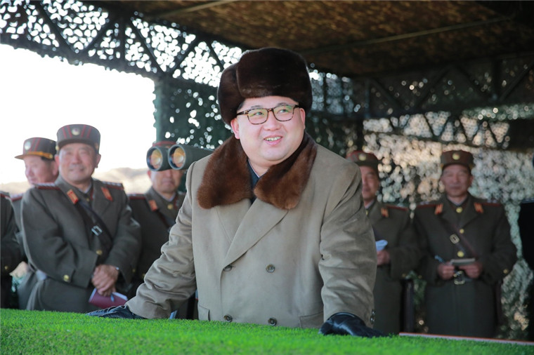 朝中社3月20日提供的照片显示,朝鲜最高领导人金正恩(前)指导朝鲜人民军进行登陆及反登陆防御演习。