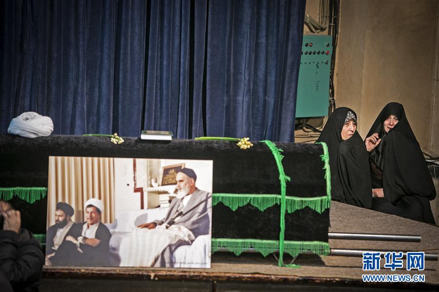 1月9日,在伊朗首都德黑兰,人们在前总统阿克巴尔·哈什米·拉夫桑贾尼的灵柩旁哀悼。
