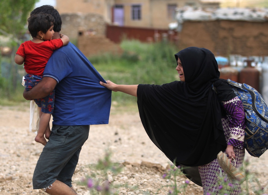5月5日,在伊拉克摩苏尔北部,当地居民逃离战区。 新华社/法新