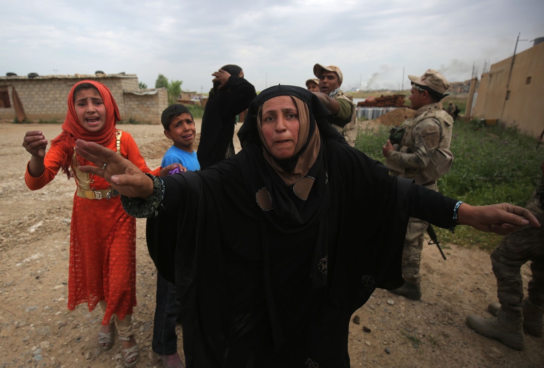 5月5日,在伊拉克摩苏尔北部,当地居民逃离战区。 新华社/法新