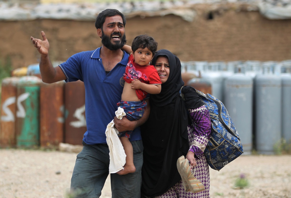 5月5日,在伊拉克摩苏尔北部,当地居民逃离战区。 新华社/法新