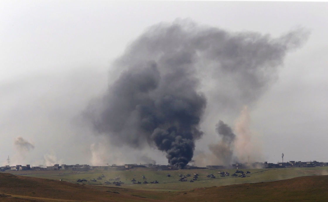 5月5日,伊拉克摩苏尔西北部前线冒起浓烟。 新华社/路透