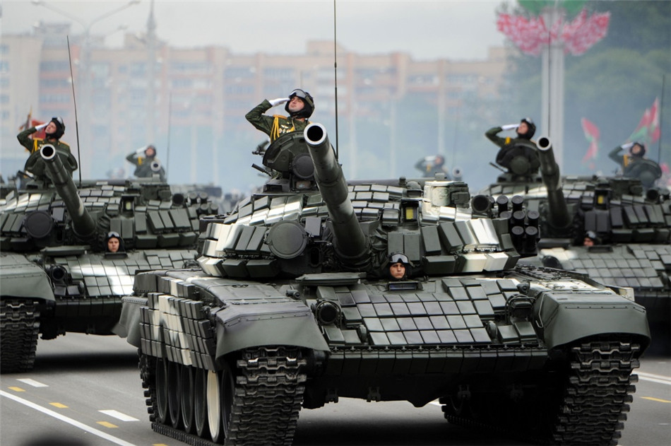 7月3日,在白俄罗斯首都明斯克,士兵参加独立日阅兵式。新华社/路透