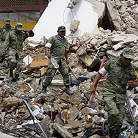 9月8日,在墨西哥南部地震重灾区瓦哈卡州,救援人员在现场搜救。新华社发(戴维摄)