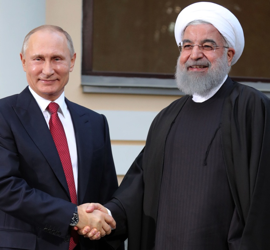 11月22日,在俄罗斯南部城市索契,俄罗斯总统普京(左)与伊朗总统鲁哈尼握手。 新华社/法新