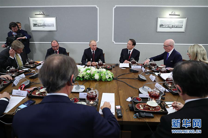 第22届圣彼得堡国际经济论坛期间,普京会见了来自中国、美国、德国等出席论坛的9家世界主要通讯社及媒体组织负责人。