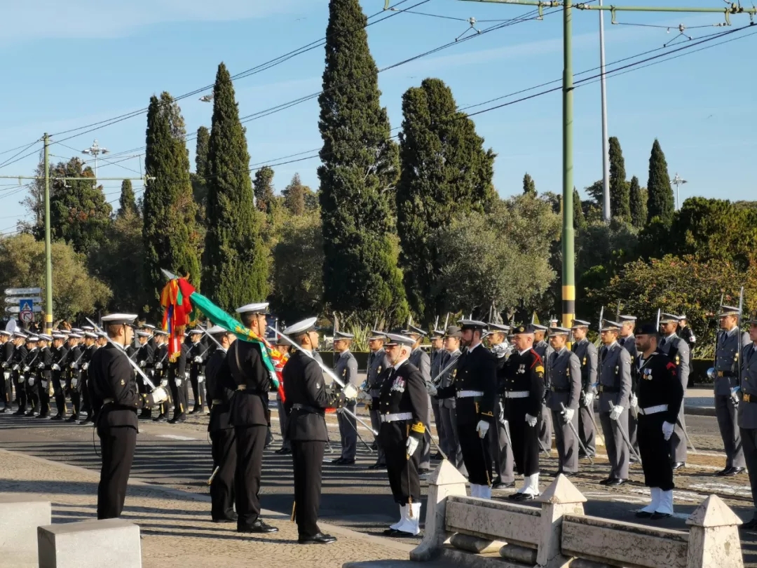 葡萄牙三军仪仗队列队完毕。(央视记者张晓鹏拍摄)